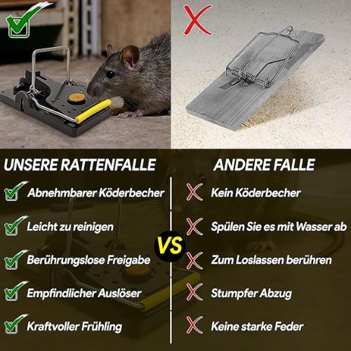 Easy to use: each trap in a pack of six is reusable and offers an environmentally friendly and cost-effective solution. The 14 cm trap is ideal for catching large mice and small rats, thus increasing catching efficiency.